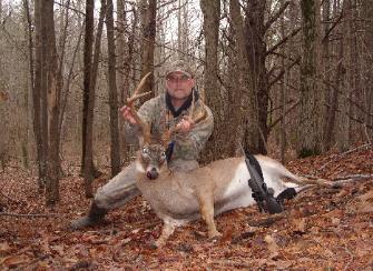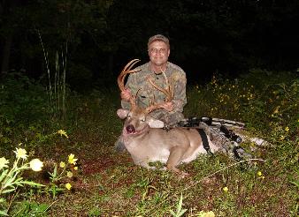 | Gerald Stone killed this great buck on Sept 15, 2011 in Prince George’s County Maryland. "I have several trail camera pictures of this buck, Keith, and I had been scouting him and an even larger 11 point buck for 4 months now. Just a great feeling to know that all my hard work and scouting paid off with taking this incredible buck." The buck weighed 192 lbs dressed. Gerald is getting quite a collection of trophies adorning our website. Wishing you great hunting to come. |