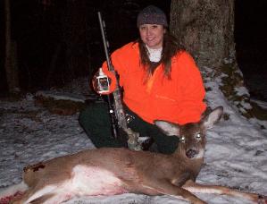| Jennifer Merritt of East Fairfield VT collected her deer for the 2011 season. Husband Nick is mighty proud of his better half. |