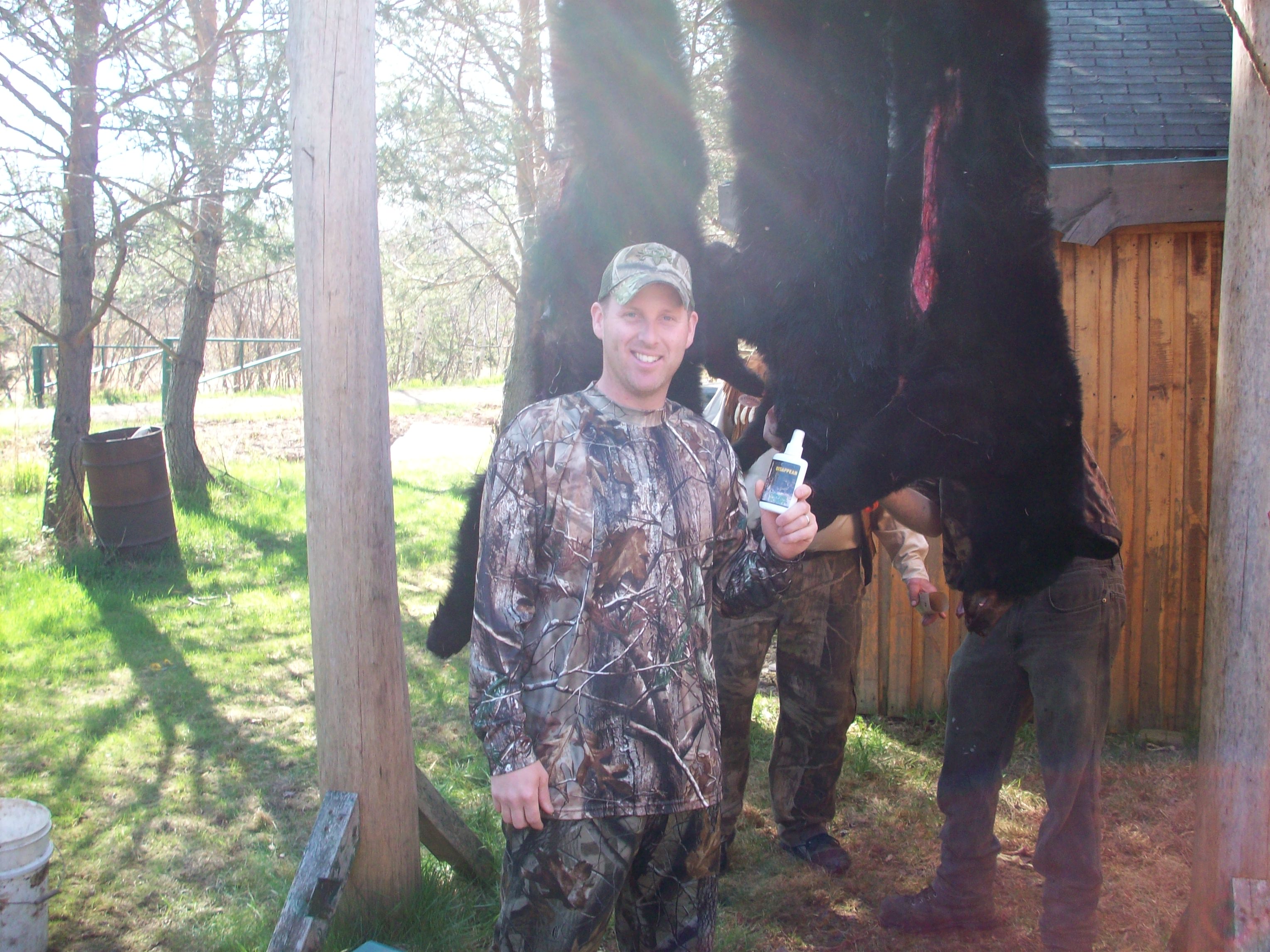 | So your scent worked good once again. The guide up there liked it a lot so I left him my bottle to try with some with other hunters. So if you get a call from a guy in New Brunswick placing an order it's probable buckaroo. Nick is showing off his May 2012 bear. Hope all is well. Will talk soon Nick Merritt |