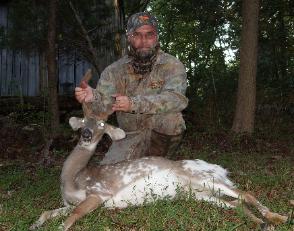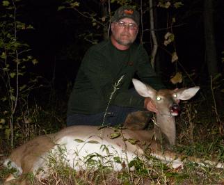 | Killed this doe yesterday just before dark and after pictures , gutting and a 1/2 mile drag I finally got her in the truck. That long drag definitely made for a late night but well worth it. A very nice fat doe and some really good eats here. 1 more slickhead to go and I'm back in the buck hunt. Jerry Stone |