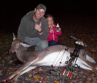 | Nick Merritt, East Fairfield VT, harvested a nice fat doe on October 7, 2012. Marianna is helping dad more and more |