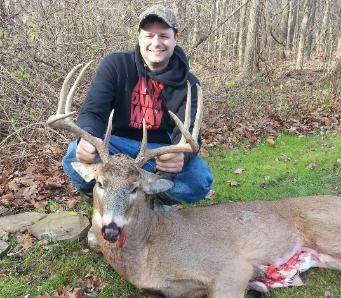 | Shaun McCune of Essex Jct., VT nailed his first bow kill as well as his first Ohio deer on November 10, 2012 in Muskingum Co, OH |